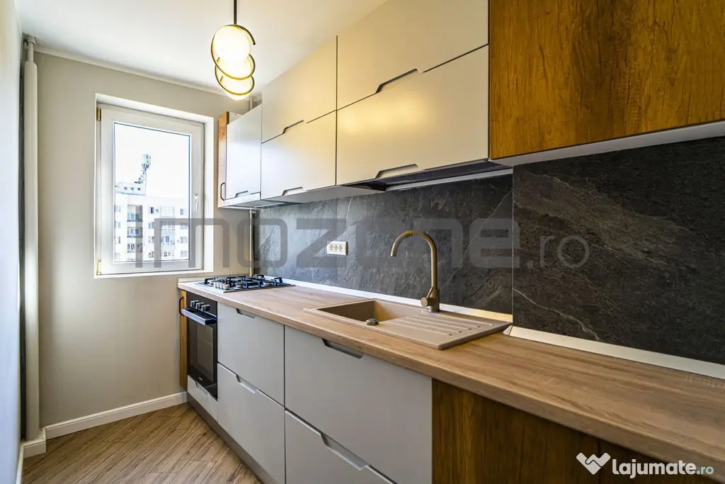 Apartamentul este complet mobilată (cu pat de mijloc si canapea) și utilată, fiind pregătită pentru a vă oferi confortul dorit încă din prima zi. Printre dotările se numără aerul condiționat, TV, frigider, mașina de spălat, aragaz, hota, inclusiv plase de tantari.