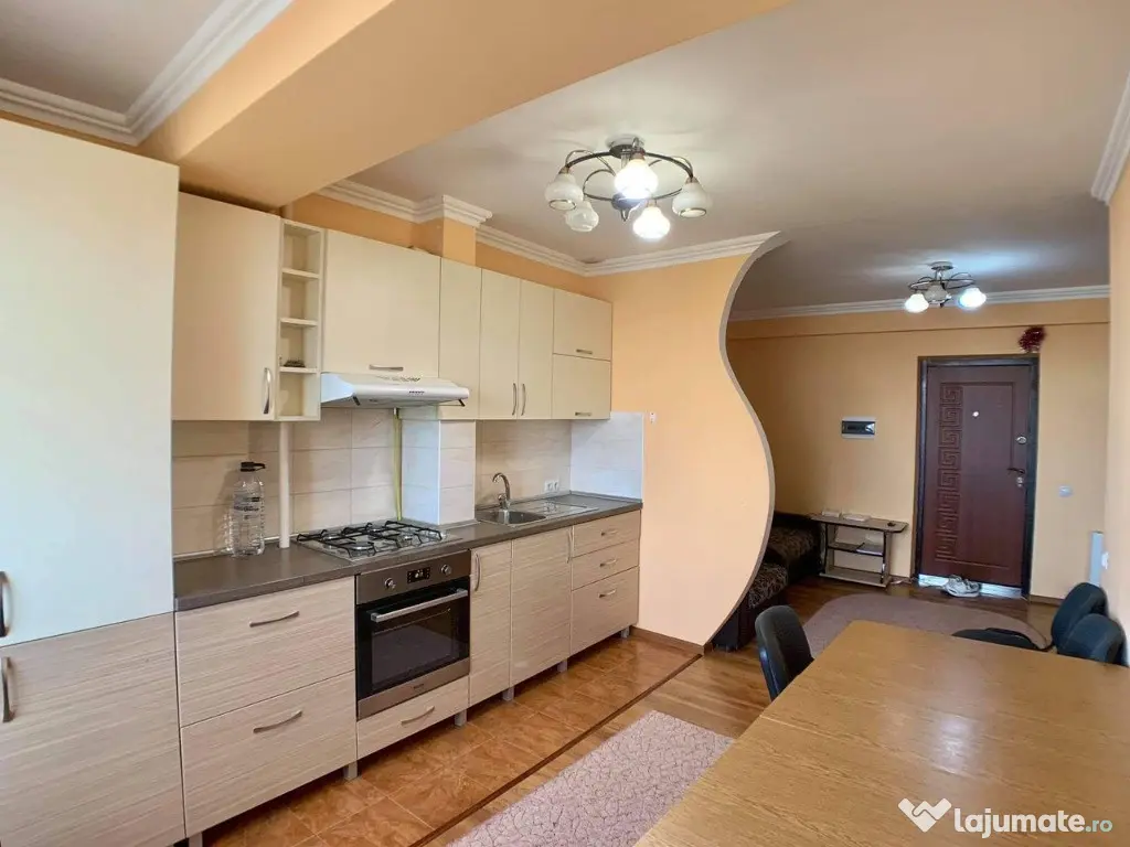 Oferim spre inchiriere apartament 1 camera foarte aproape de centrele comerciale BILLA si Kaufland, la 5 minute de mers pe jos de Piata 700 si 10 minute de centrul orasului. Apartamentul este format din: 1 camera, hol, baie, bucatarie si debara. Pentru cablu TV si internet se poate face contract cu oricare furnizor local (DiGi, Telekom etc). Mobilat si utilat nou, etaj 1, centrala suprafata de 36 mp2. Confort: 1 Tip imobil: Bloc de apartamente