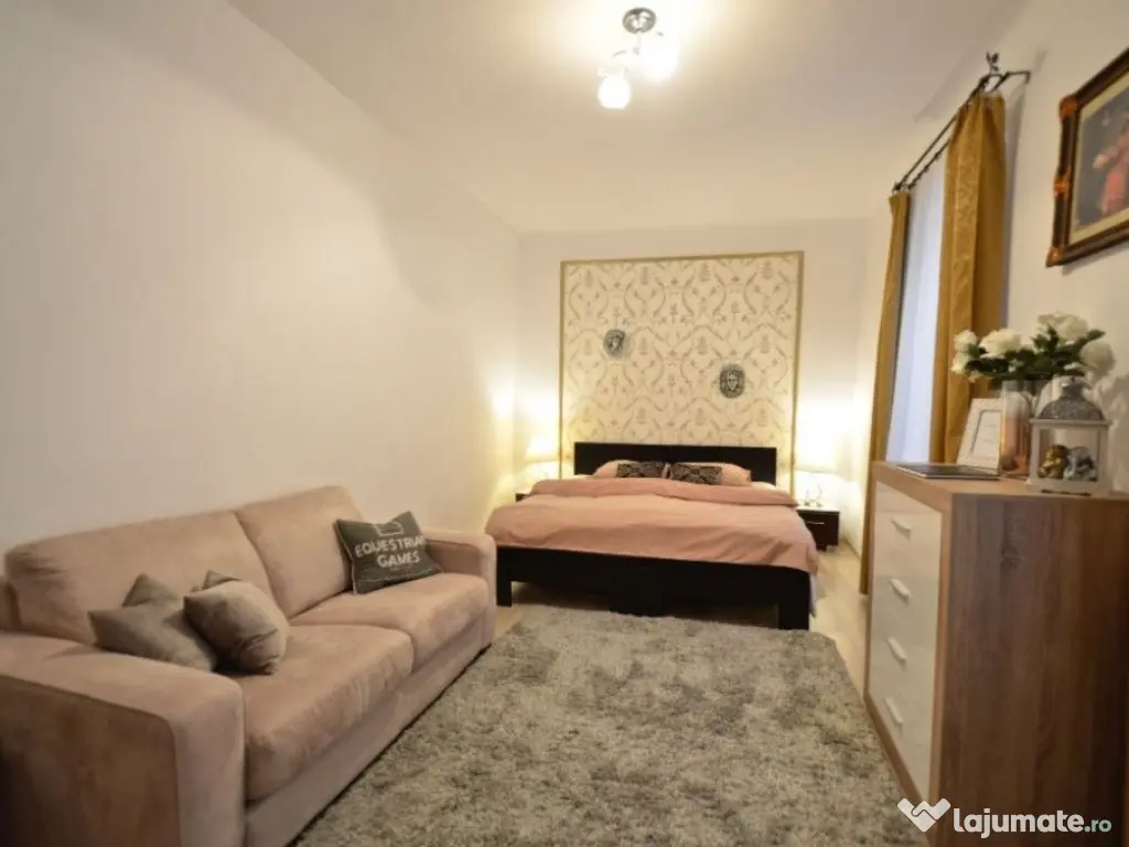 Se ofera spre inchiriere apartament cu o camera situat in Calea Buziasului, 34mp, dotat cu pat dublu, canapea extensibila, balcon, baie cu cada, etc. Apartamentul a fost recent renovat si amenajat. Este situat la etajul 3. Confort: 1 Tip imobil: Bloc de apartamente