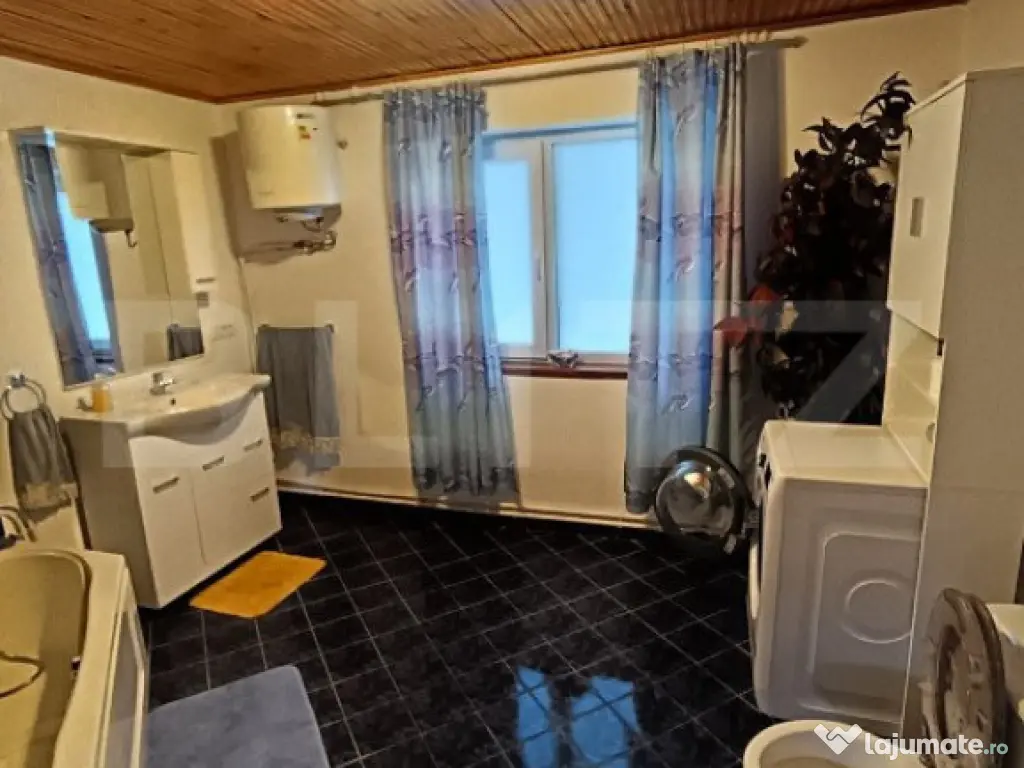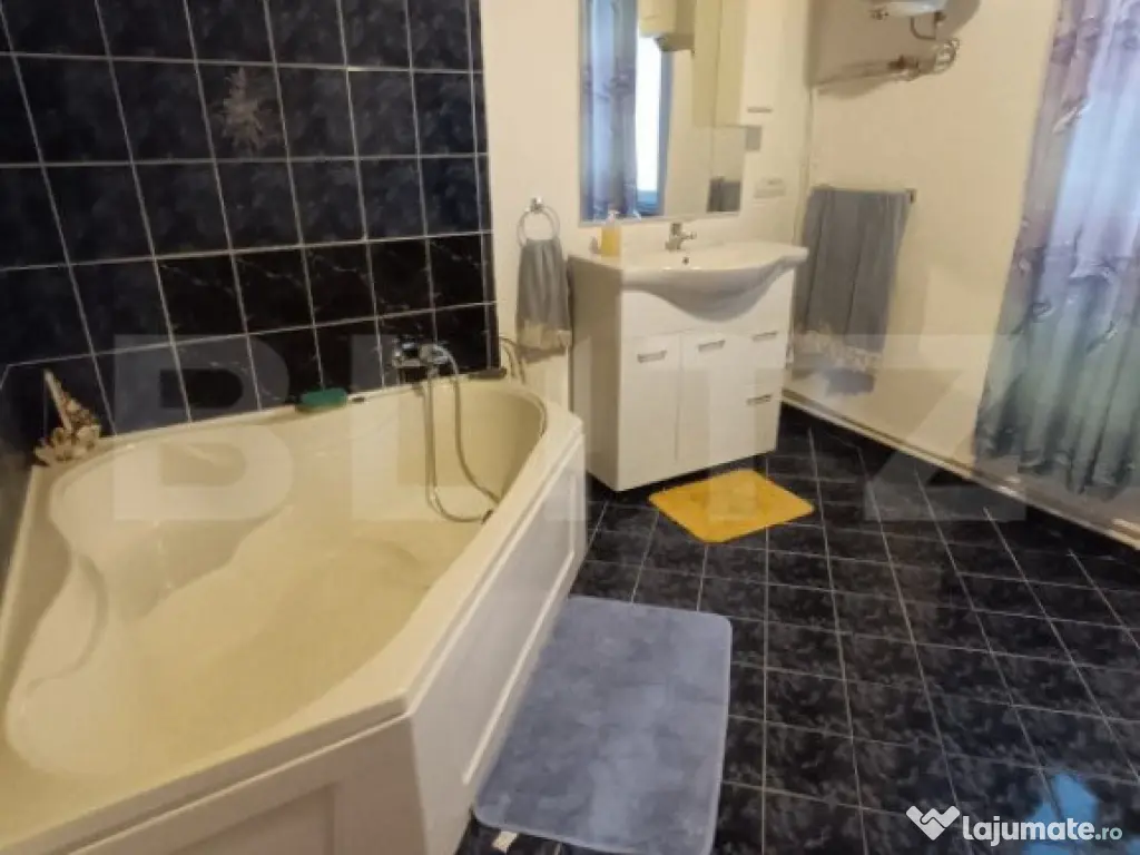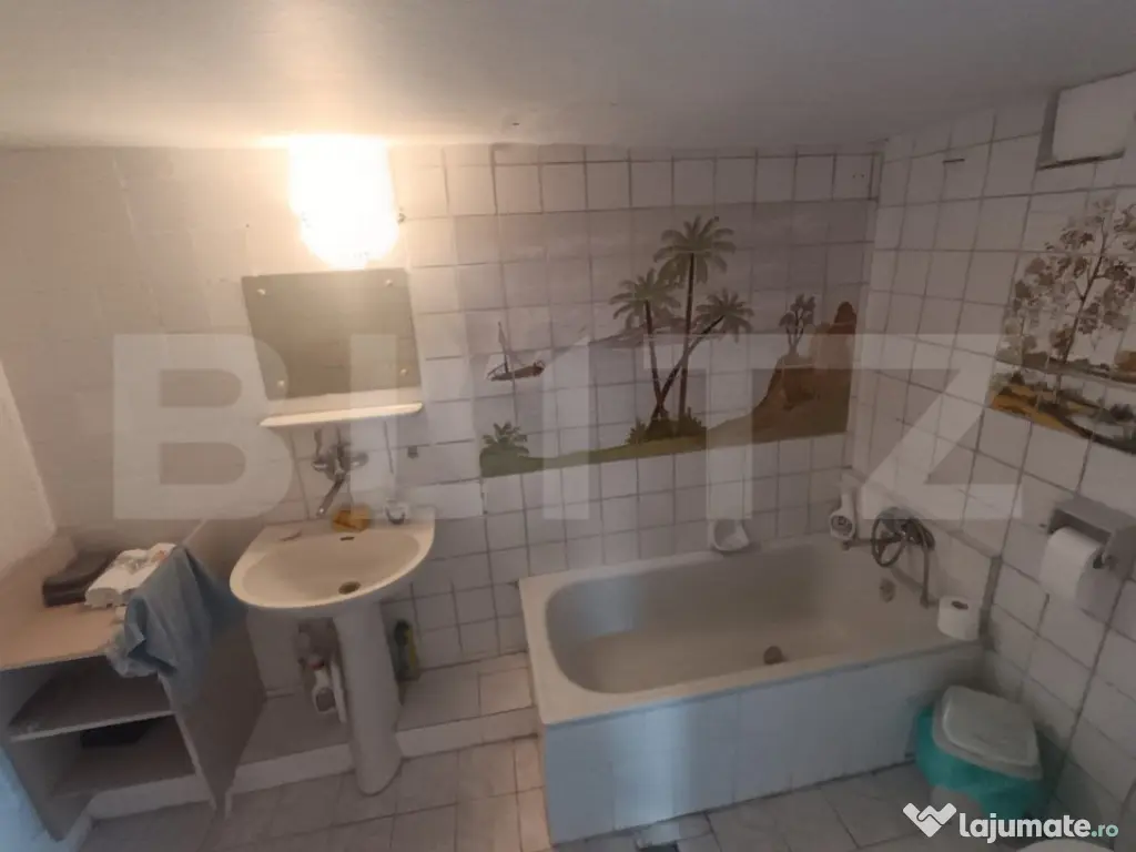 Blitz intermediază vânzarea unei proprietăți compuse din 2 case și un garaj, așezate pe un teren de 9 ari cu două căi de acces, din zona centrală, pretabilă pentru rezidență sau investiție în vederea deschiderii unui spațiu comercial sau de birouri. Imobilul principal este o casă cu regim demisol+parter+pod, a cărei construcție a fost finalizată în anul 1994 și este pe structură de beton + cărămidă, cu suprafața utilă de 134mp (p=70mp, d=64), la care se adaugă podul în care se pot amenaja încă 2 camere. Această casă este locuibilă, având nevoie de doar câteva recondiționări. Încălzirea se realizează prin 2 centrale termice proprii și un șemineu. La parter se găsește living, 1 dormitor, bucătărie utilată, baie, și un hol larg cu acces la pod cu scări, iar demisolul este compus din bucătărie, 2 camere, baie și hol. A doua casă de 110mp a fost construită în anul 1900 pe structură de beton și lemn, are nevoie de lucrări de renovare la parer, demisolul fiind parțial renovat, însă este funcțională și este compusă din 4 încăperi neamenajate + baie. De asemenea pe proprietate se mai află și un garaj de 23mp (19mp util) cu acces direct în strada asfaltată. Pentru orice fel de informații aferente proprietății sau pentru programarea unei vizionări contactează-ne! Cod ofertă / ID BLITZ: P102058 Id intern: P102058 Număr Băi: 3 Nr. locuri parcare: 5-10 Curent Apă Canalizare Gaz