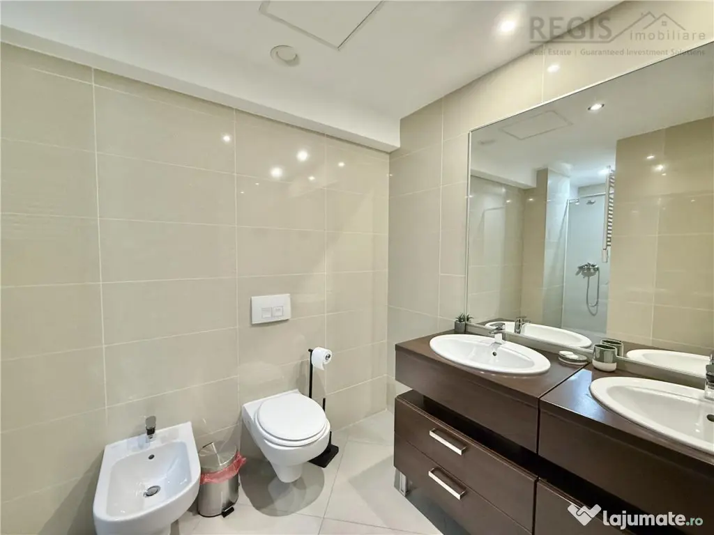 Regis Imobiliare va prezinta la vanzare, Apartament cu 3 camere, 154 mp ( 131 mp utili si 23 mp terase ) Silver Mountain, Poiana Brasov, loc de parcare subteran Apartamentul este situat in statiunea turistica Poiana Brasov, in complexul rezidential Silver Mountain. Resortul dispune de: sala de fitness, jacuzzi, piscina interioara, piscina exterioara infinity incalzita, sauna umeda si uscata), restaurant, club si 2 sali de conferinta. Apartamentul isi rasfata locatarii prin privelisti relaxante din fiecare camera si confort termic sporit. Cei 154 mp sunt armonios impartiti dupa cum urmeaza: - living; - zona matrimoniala formata din dormitor, dresing si baie; - dormitor II cu baie proprie; - bucatarie; - holuri - doua terase in suprafata de aproximativ 23 mp Apartamentul se vinde mobilat si utilat complet. Particularitati care te fac sa te simti minunat in acest apartament: - Usa metalica dotata cu incuietoare smart controlata de pe telefonul mobil; - Pardoseala Gerflor, respectiv placi ceramice in bai; - Incalzire cu ventiloconvectoare; - Geamuri termopan cu tamplarie de aluminiu; - Pereti interiori finisati cu vopsea lavabila. Apartamentul se vinde inpreuna cu loc de parcare subterane. Video prezentare: https://www.youtube.com/watch?v=jBEBfDyIyf0 Cuvantul care descrie cel mai bine proprietatea este Eleganta. Compartimentarea este una lineara, cu zone mari vitrate, cu dormitoarele foarte mari situate in zonele laterale iale apartmentului iar pe zona centrala fiind dispus livingul spatios cu chicineta usor retrasa si locul de luat masa. Proprietatea este atractiva si foarte accesata in regim hotelier, la amenajare proprietatii s au folosit elemente in culori calde si luminoase. De cum vei pasi in aceasta proprietate te va invalui atmosfera de confort, lux si eleganta, totul in mijlocul naturii. Fie ca doresti sa impletesti utilul cu placutul, sa obtii beneficii financiare considerabile prin exploatarea in regim hotelier si sa iti faci si tu concediile aici, fie ca dooresti sa iti bucuri viata locuind permnanent in inima muntilor dar si aproape de civilizatie, proprietatea aceasta poate fi tot ce ai visat. Verdele brazilor si zumzetul padurii te vor trezi de dimineata iar piscurile muntilor te vor incanta fie vara fie iarna. ID intern: 6732 Confort: lux Tip imobil: Bloc de apartamente Număr Băi: 2 Posibilitate parcare: Da Nr. locuri parcare: 2