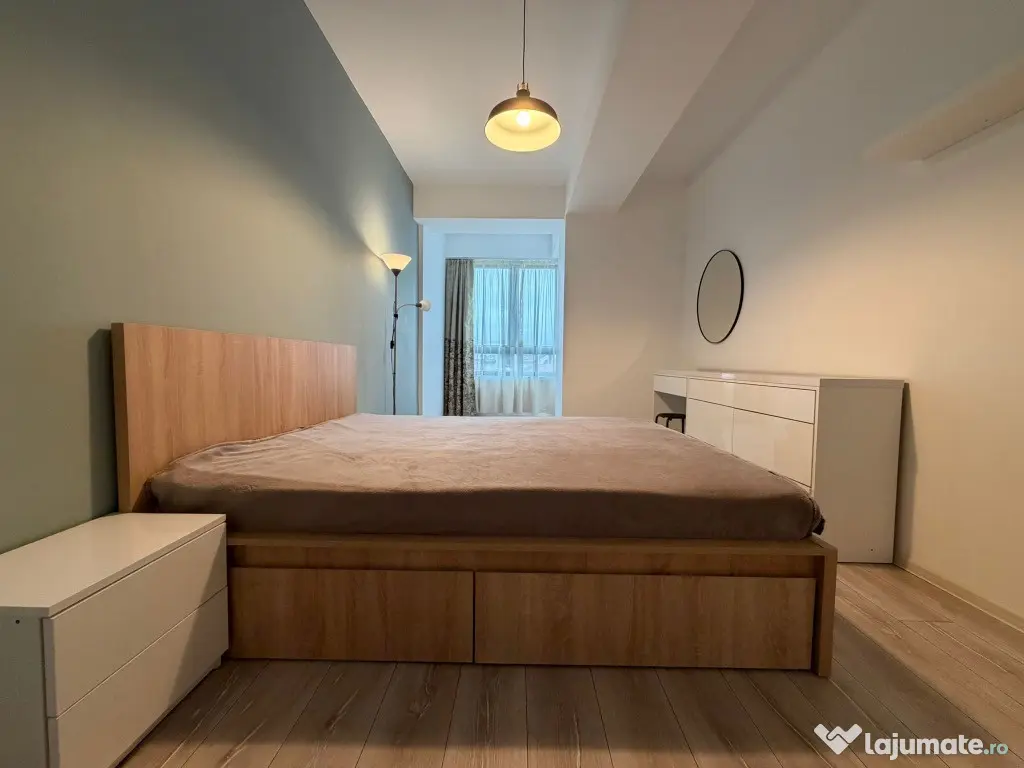 Ofer spre închiriere apartament cu 2 camere, situat pe Bd. Pipera nr. 1, București, la etajul 2 din 4, într-un bloc nou finalizat în 2022. Suprafață: 55 mp utili interior aproximativ 10 mp terasă total aproximativ 65 mp Apartamentul este compartimentat eficient și luminos: living cu zonă de dining bucătărie complet mobilată și utilată dormitor spațios baie modernă terasă generoasă Se închiriază complet mobilat și utilat, gata de mutare. Dispune de electrocasnice moderne, aer condiționat, mașină de spălat, TV și multiple spații de depozitare. Bloc nou, curat, vecini liniștiți. Localizare foarte bună, cu acces rapid către zona de birouri Pipera – Barbu Văcărescu, Promenada Mall, restaurante, cafenele, săli de fitness, supermarketuri (Mega Image, Lidl, Carrefour), școli și grădinițe private. Transport facil: stații STB în apropiere, acces rapid către metrou Pipera, conexiune ușoară către A3 și zona de nord a Capitalei. Ideal pentru cuplu sau profesionist care lucrează în zona de nord. Direct proprietar – fără comision. Pentru detalii și programare vizionare, mă puteți contacta. Confort: Lux Tip imobil: Bloc de apartamente Număr Băi: 1 Comision cumpărător: 0%