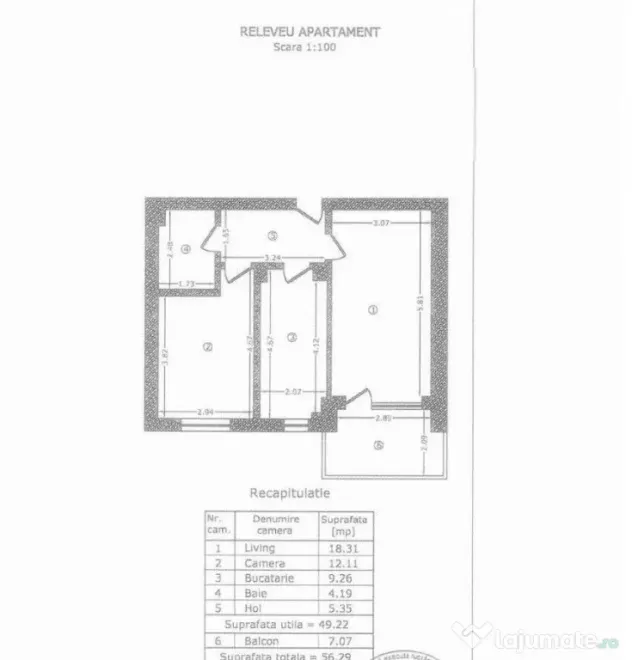 - suprafata utila de 56,29 mp