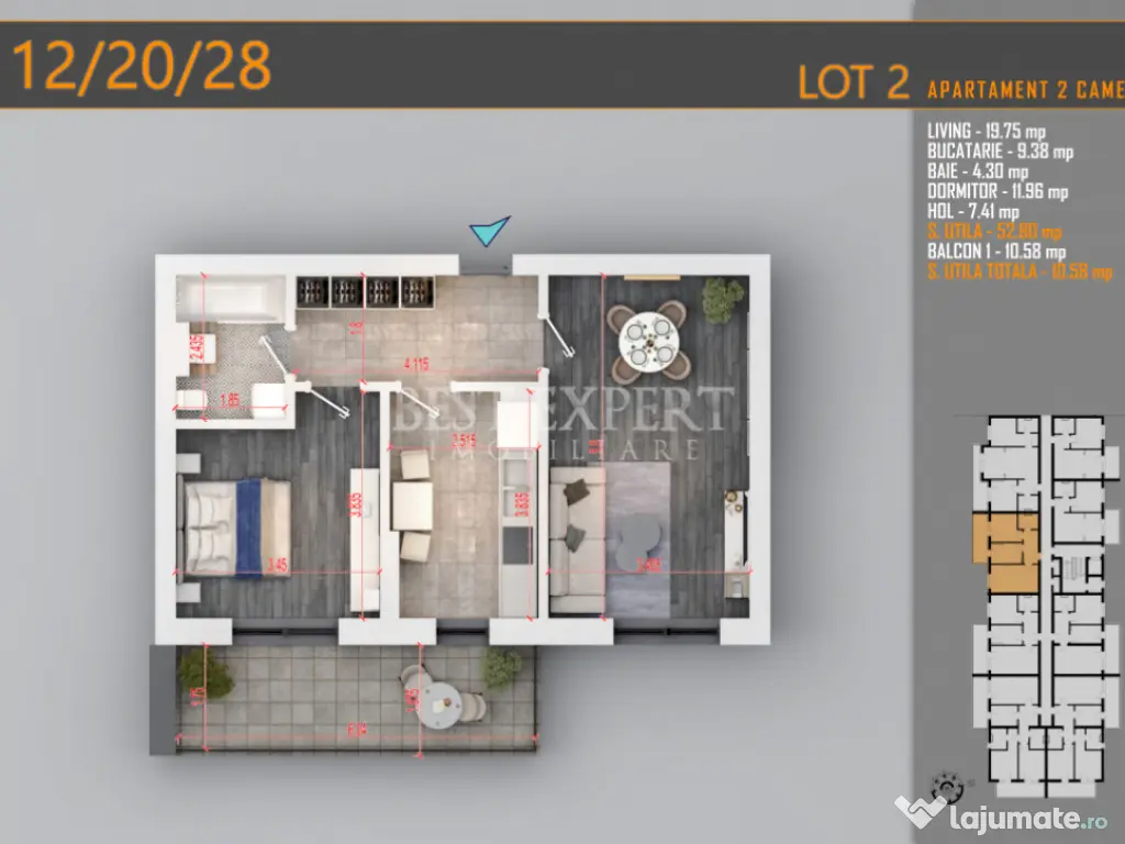 Oferta noastra completa o gasiti pe site-ul www.efy-residence.ro Birou vanzari dezvoltator Titan-Pallady Comision 0% Pret proprietate: -93.388 Euro + TVA Parcare:7.000 Euro +TVA Pozitionare : zona Theodor Pallady Tip proprietate - 2 camere Tip imobil - D+P+3 etaje Total unitati ansamblu - 108 unitati Termen Finalizare - Iunie 2027 Suprafata utila - 52.81 mp utili +10.57 mp balcon, total 63.38 mp utili Utilitati publice - curent, apa, canalizare, gaz Distanta mijloace de transport in comun: - 10 minute metrou Nicolae Teclu Dotari -centrala proprie -incalzire in pardoseala -vas toaleta sistem gheberit -finisaje la alegere Sediu: Drumul Gura Crivatului, nr. 4-22, Sector 3 Waze: Best Expert Imobiliare Telefon Programari: 0741.531.808 Program vizionari: L-V 10:00-18:00 / S: 10:00-14:00 Facebook /Instagram/ TikTok - Best Expert Imobiliare Id intern: P5534 Confort: 1 Tip imobil: Bloc de apartamente Număr Băi: 1 Comision cumpărător: 0%