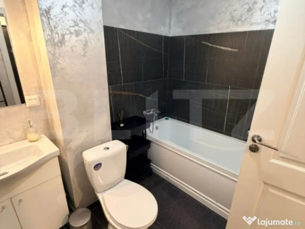 Se oferă spre vânzare apartament modern, situat în ansamblul rezidențial Ego Residence, pe strada Lombului, Cluj-Napoca. Locuința are o suprafață utilă de 47 mp și este amplasată la etajul 4 din 6 al unui imobil dotat cu două lifturi moderne, oferind un bun echilibru între accesibilitate și confort. Compartimentarea este eficientă și include living cu bucătărie open-space, dormitor, baie și balcon. Apartamentul se vinde complet mobilat și utilat, fiind pregătit pentru mutare imediată. Electrocasnicele sunt în garanție, iar confortul este completat de aer condiționat instalat atât în living, cât și în dormitor. Finisajele sunt moderne, iar poziționarea la etaj intermediar contribuie la o eficiență termică ridicată. În preț este inclus și un loc de parcare subteran. Proprietatea beneficiază de acces facil către centrul orașului, fiind situată în apropierea stațiilor de transport în comun, magazinelor și a altor puncte de interes. Cod ofertă / ID BLITZ: P169884 Id intern: P169884 Confort: 1 Tip imobil: Bloc de apartamente Număr Băi: 1