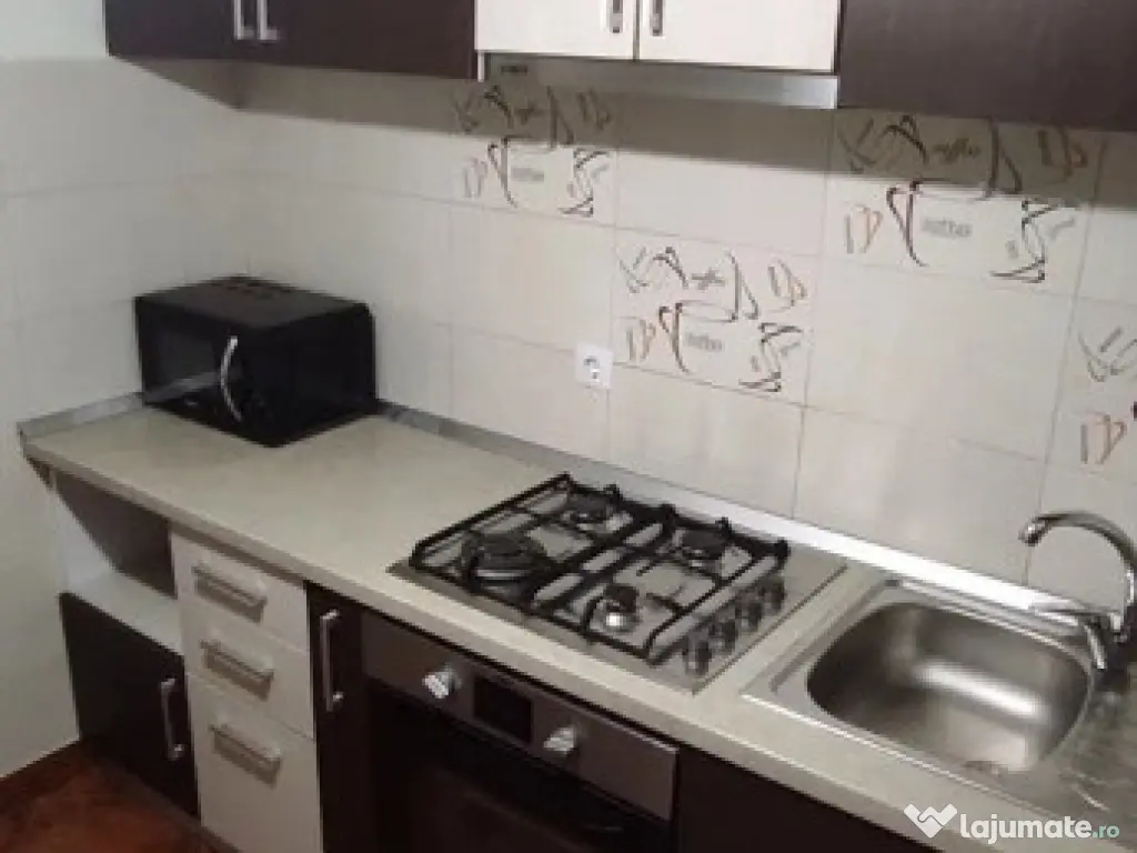 Inchiriez apartament cu doua camere, suprafata utila de 48mp, fiind decomandat si compartimentata astfel: hol, o camera, bucatarie si baie. Imobilul se afla la etajul 3 dintr-un bloc de apartamente cu 4 etaje. Acesta dispune de centrala termica proprie pe gaz, cablu TV, cablu internet. Se inchiriaza complet utilat si mobilat. Confort: 1 Tip imobil: Bloc de apartamente