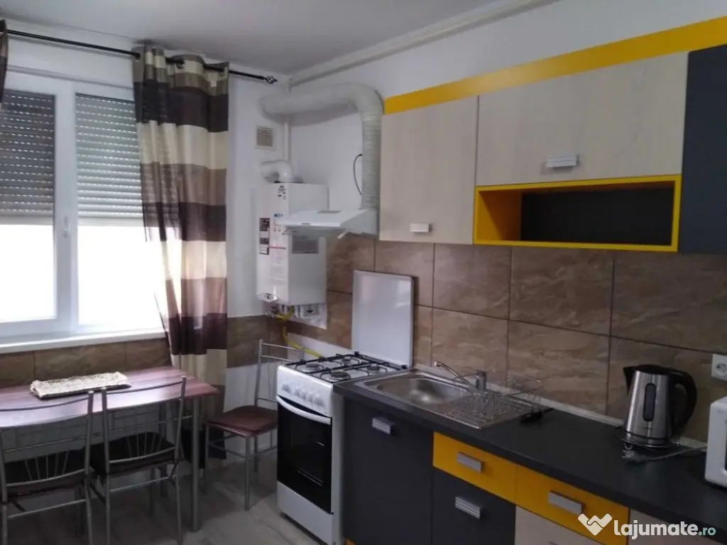 Oferim apartament decomandat 2 camere zona Turda, 48 mp2, etaj 4/11, cu lift nou, bloc reabilitat termic, complet utilat si mobilat modern. Geamuri termopan, usa metalica, masina de spalat, AC, aragaz + cuptor, frigider, cuptor cu microunde, TV. Disponibil imediat. Confort: 1 Tip imobil: Bloc de apartamente
