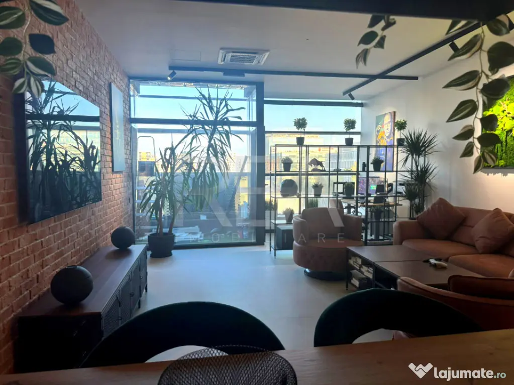 Apartament cu 2 camere, mobilat și utilat. Blocul are 6 etaje, iar apartamentul este situat la etajul 3, în complexul rezidențial One North Lofts.