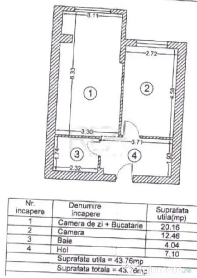 Compartimentare: living, dormitor, bucătărie si baie.