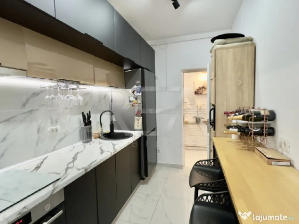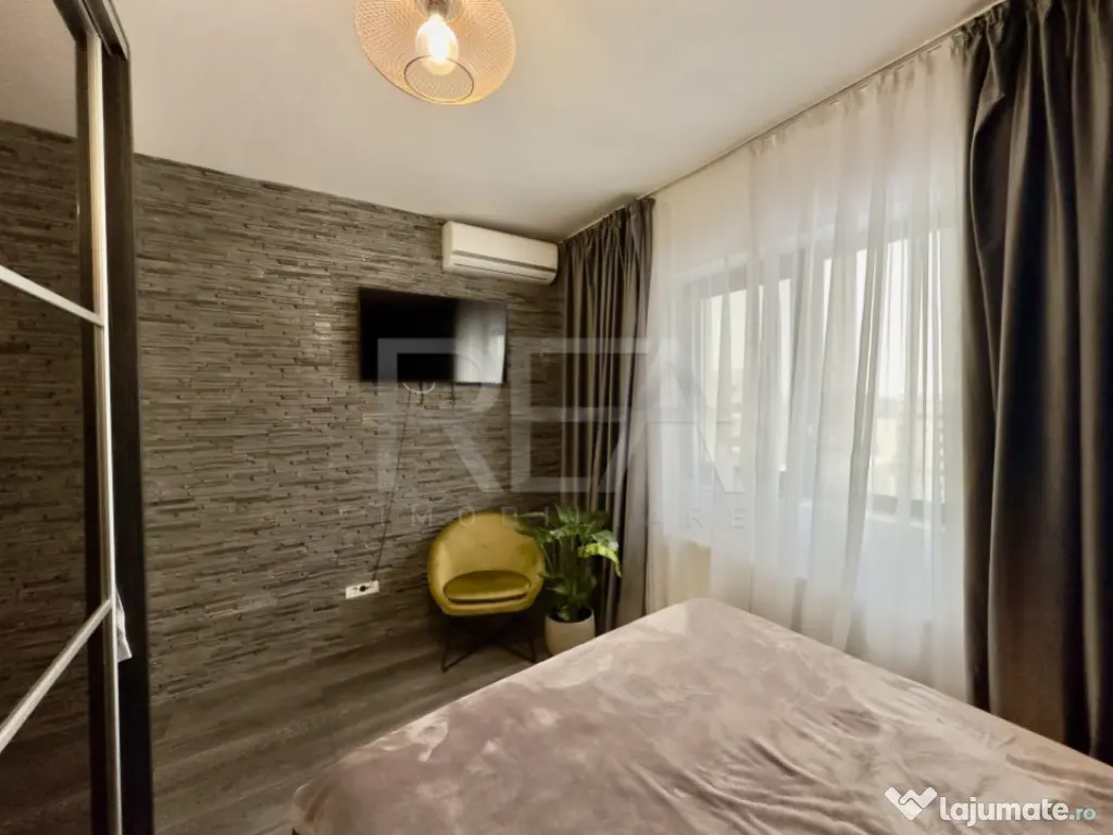 R.E.A. Imobiliare. Apartament cu 2 camere, decomandat, situat în cartierul Grozăvești, într-un imobil nou finalizat în 2021, parte a ansamblului rezidențial Regie Residence. Proprietatea este amplasată la etajul 11 din 11 și are o suprafață totală de 49 mp, din care 46,1 mp utili și 2,9 mp balcon. Imobilul beneficiază de acces securizat, este termoizolat și are structură din beton armat cu închideri din cărămidă. Poziționarea este excelentă, cu acces facil către mijloacele de transport și puncte de interes importante: aproximativ 5 minute de mers pe jos până la stația de metrou Grozăvești și 2 minute până la stațiile STB. În imediata proximitate se află Carrefour Orhideea, magazine de proximitate (Carrefour Market, Profi, La Doi Pași), cafenele, Universitatea Politehnica București, Orhideea Towers, Podul Grozăvești, Gara de Nord și Mall AFI Cotroceni. Apartamentul este decomandat, finisat cu materiale de calitate și dotat cu parchet SPC (vinyl), gresie porțelanată, uși din lemn și sticlă, precum și sistem de aer condiționat. Proprietatea se vinde complet mobilată și utilată. Încălzirea este asigurată prin centrală termică proprie Vaillant, cu calorifere în toate camerele. Pentru informații suplimentare și programarea unei vizionări, vă rugăm să ne contactați menționând codul de identificare P9753. Id intern: P9753 Confort: 1 Tip imobil: Bloc de apartamente Număr Băi: 1