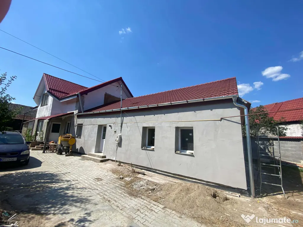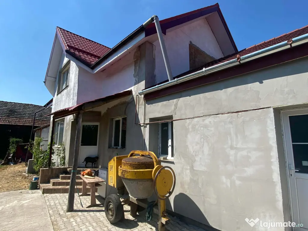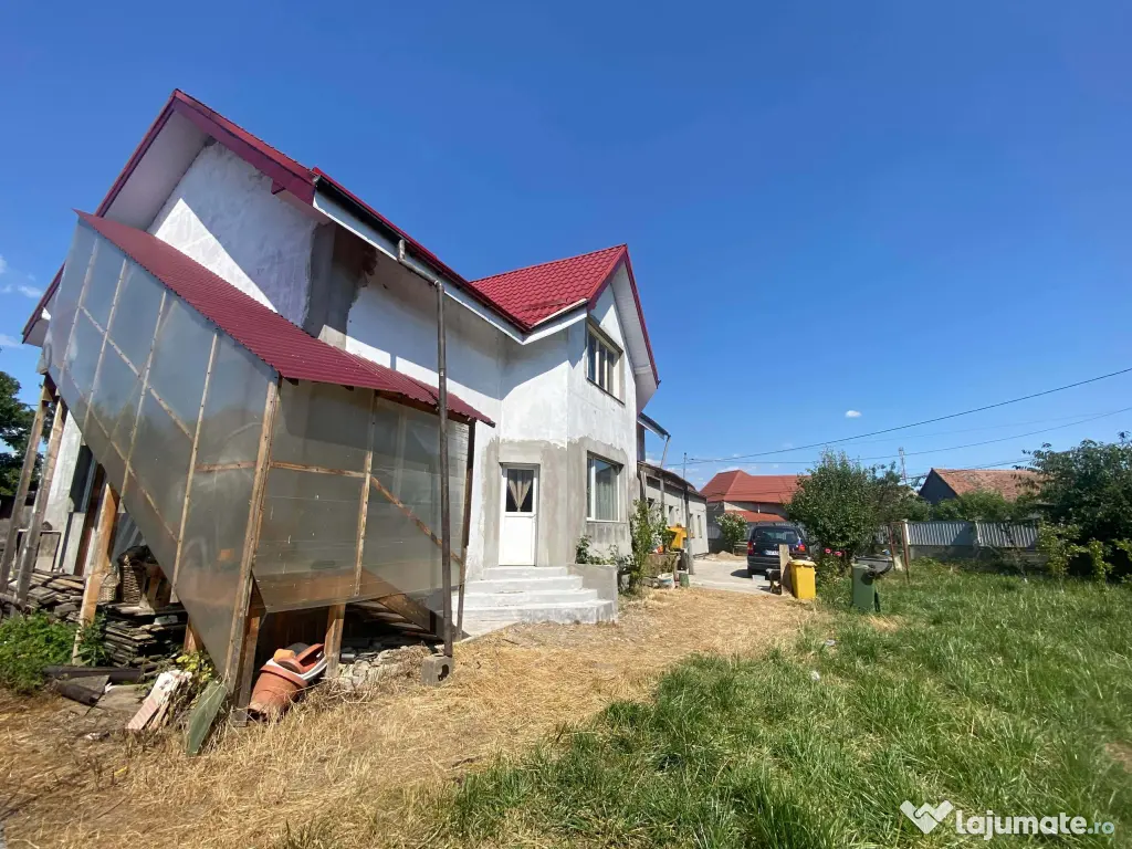 2 Casa nouă construcție din lemn, in 2018, ecologică, cu încălzire în pardoseală cu centrala pe gaz, acoperiș de tablă metalică, etc. Parter la gata, locuibil și mansardă doar schelet și scară pe exterior. Parterul are 3 camere, bucătărie cu salon deschis, 2 băi. Mansarda cu posibilitatea de a face aceeași diviziune.