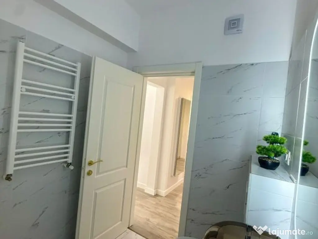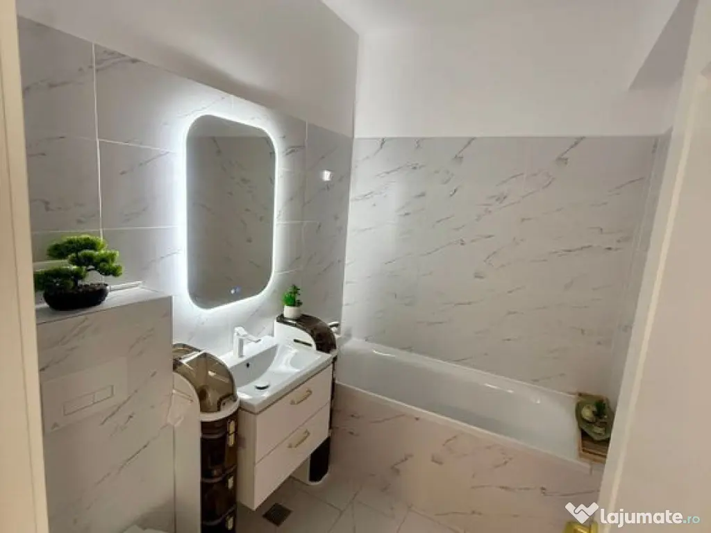 Proprietar, vand (prin agentie/pentru detalii si vizionari - tel: 0720002332), apartament compus din 2 camere(total decomandat) si dependinte, mobilat si utilat complet(cu mici exceptii in care regasim electrocasnicele mici si lucrurile strict personale). Arata exact ca in fotografii(chiar mai bine, nu este necesar sa faceti absolut nimic, decat sa va mutati cu lucrurile personale, " din pacate " doar la vizionare veti putea constata acest lucru, ramanand cu siguranta - surprinsi in mod placut) si este amplasat pe str. Biruintei, intr-un bloc nou, construit in anul 2023, situat la 1 minut de mers pe jos pana la Auchan Sky Garden si 3 minute pana la statia de metrou Berceni(pana la Pta Unirii faceti 12 minute, pana in Pipera - 25 minute, pana la orice alta statie de capat indiferent de magistrala -maxim 45minute). Spatiul pus la dispozitie de apartamentul in sine, este minutios pus in valoare, beneficiind de suficiente spatii de depozitare si surprinzand prin ingeniozitatea modului in care a fost decorat. Blocul dispune de toate utilitatile publice contorizate individual, centrala termica proprie pe gaz, incalzire clasica cu calorifere, avand un regim de inaltime de doar 6 etaje, deservit de 2 lifturi si situat in unul din cele mai aerisite ansambluri rezidentiale, ansamblul Deco. Pretul este usor negociabil. * Zona, este una cu infrastructură nouă, facilități diverse(le veti descoperi la vizionare), supermarketuri, farmacii, restaurante, școli și spații verzi, cluburi si sali de fitness, piscine inchise cu program permanent sau deschise cu program sezonier, etc. Facilități suplimentare: * Posibilitate de achiziționare loc de parcare (la cerere, contra cost, discutabil, daca prezinta interes) * Acces securizat în imobil Concluzie: Un apartament potrivit pentru persoane care caută confort, accesibilitate și un stil de viață modern apropiindu-se de ideal, atât ca locuință personală, cât și ca investiție premium, datorită zonei în continuă dezvoltare și cererii ridicate pentru închiriere. Confort: 1 Tip imobil: Bloc de apartamente Număr Băi: 1 Posibilitate parcare: Nu