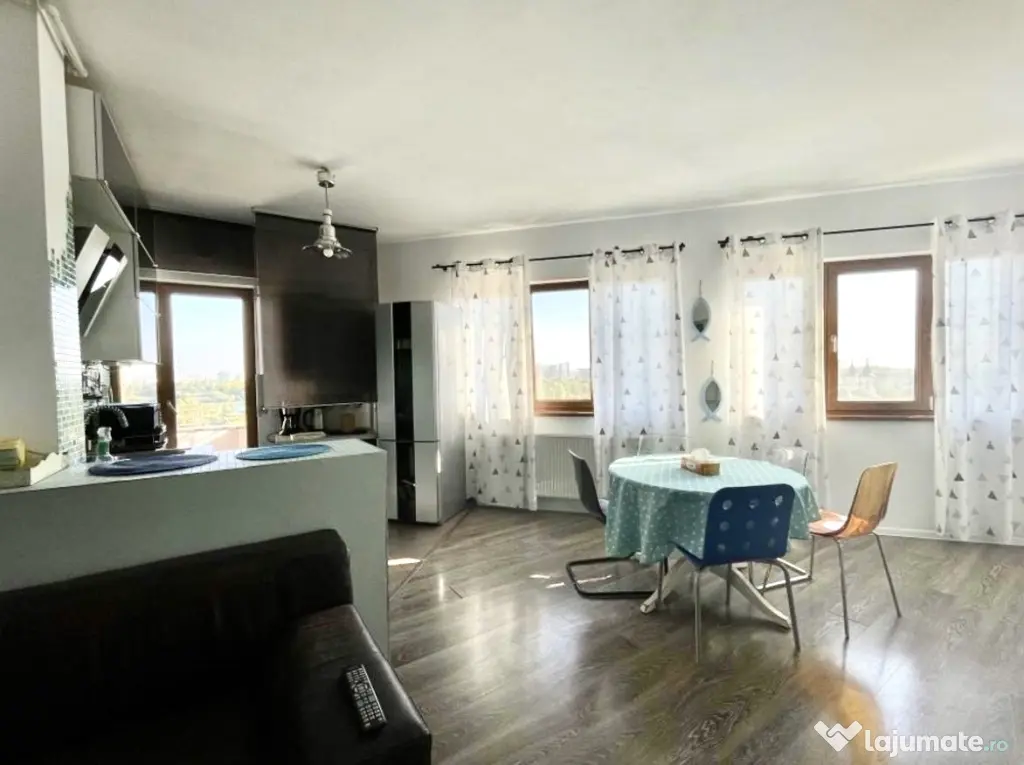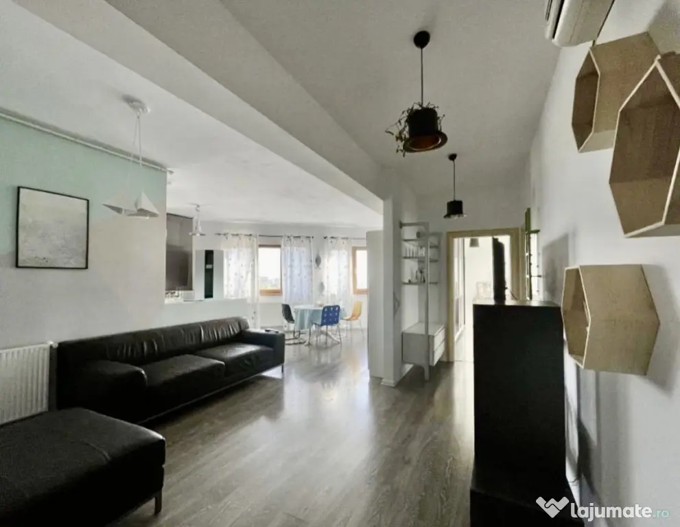 Este un apartament foarte luminos, cu multe ferestre, g/f/p, are centrala proprie, aer conditionat in living, apometre, cheltuieli mici de [mai ales iarna, fiind foarte bine izolat].