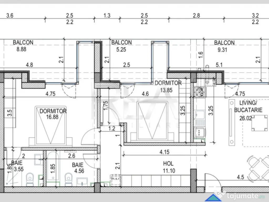 R.E.A. Imobiliare Apartament 3 camere, finisat, semidecomandat, orientat NORD, la etajul 5/5, într-un complex construit în anul 2021, in zona PIPERA. PRETUL AFISAT ESTE CU TVA INCLUS! - Suprafata totala 99,40 mp: 75,96 mp utili+ 23,44 mp balcoane. - Configuratie: 2 dormitoare, living cu bucatarie open space, hol, 2 bai si 3 balcoane. - Incalzire prin calorifere, centrala proprie. - Pret loc de parcare acoperit 15.000 EUR + TVA. La un minut de mers cu masina de Scoala Americana sau Scoala Internationala Olga Gudynn. Vecinatatile la fel includ: AISB Early learning center, British School of Bucharest, British Fotball School, Mark Twain International School Junior Campus, World Class Atlantis, Echilibria Montessori Education. Pentru detalii si vizionari, vă rugăm să ne contactați, specificand codul de identificare P2892. Id intern: P2892 Confort: 1 Tip imobil: Bloc de apartamente Număr Băi: 2 Nr. locuri parcare: 1
