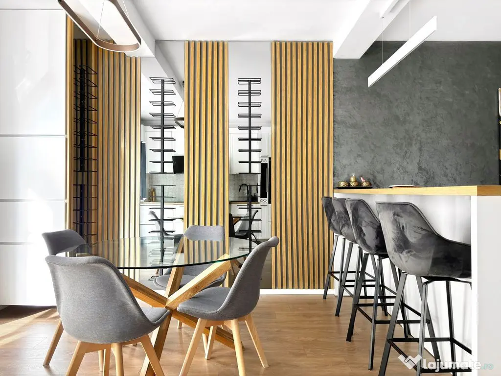 - Utilat complet, inclusiv frigider de vinuri si uscator pentru maini in baia de serviciu.