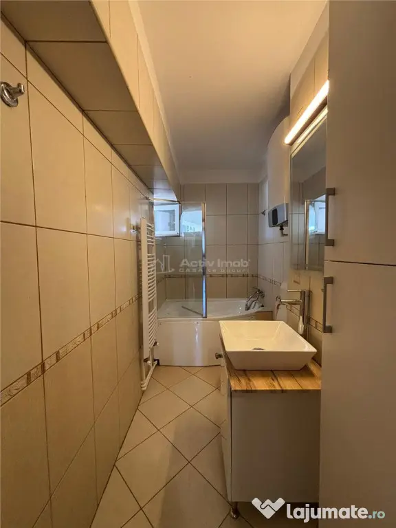 Dotat si mobilat complet: Aragaz, frigider, masina rufe, TV, wifi, mobila inclusa.