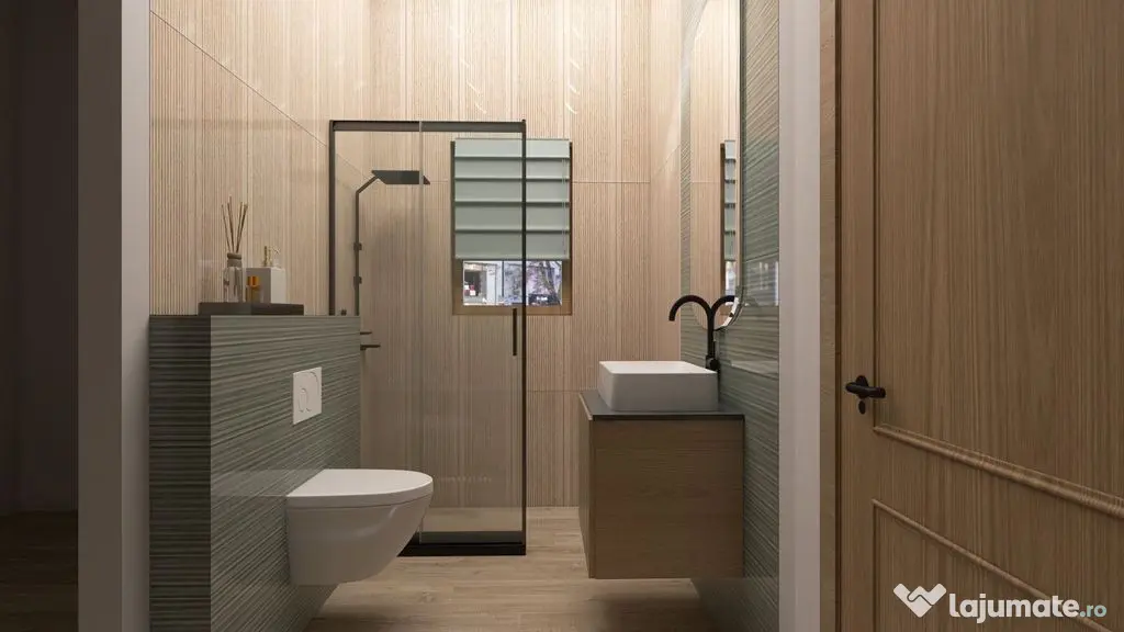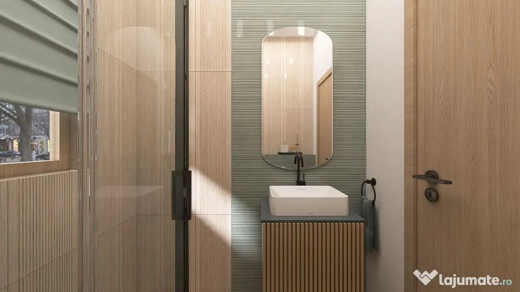 Contorizarea apei reci se va realiza separat pentru fiecare apartament in parte si general in caminul din vecinatatea imobilului prin intermediul unui contor de apa. Apa caldă va fi furnizată prin sistemul de încălzire centrală situat în subsolul clădirii. Spaţiu si racorduri pentru maşina de spălat.