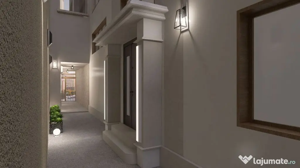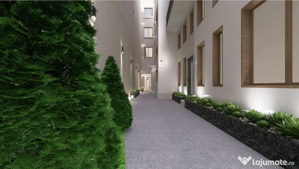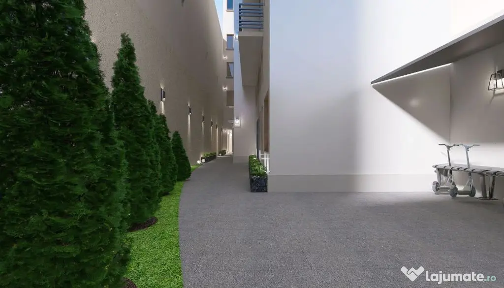 Imobilul va beneficia de lift electric pentru 3 persoane, silenţios, marca OTIS sau similar, boxe cu usi din metal, pereti vopsiti in alb, iluminat prin sistem led, sistem de supraveghere video, videointerfon pentru fiecare apartament, amenajarea exterioara a curtii prin plantare de vegetatie si placi ceramice/piatra naturala.