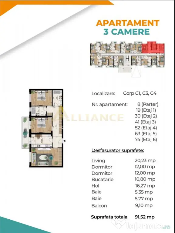 3. 2 camere ( 59mp) : cash - 89.500euro; TVA inclus