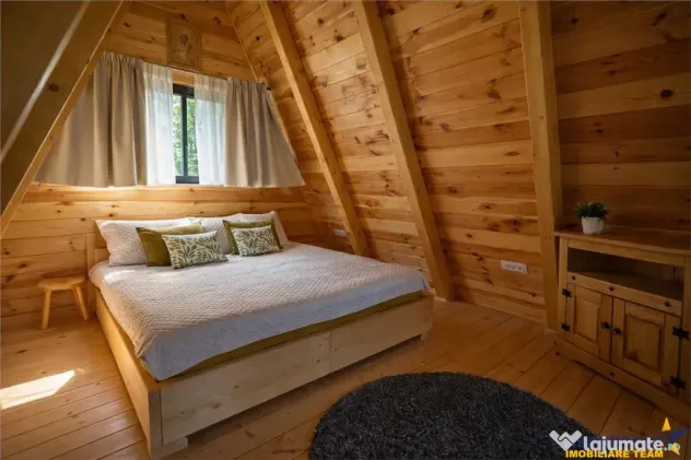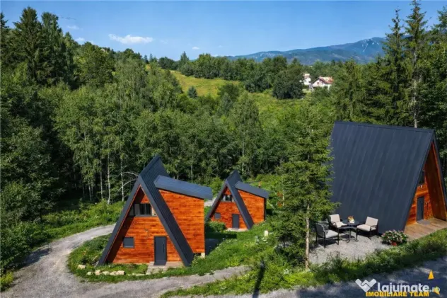 propune spre vanzare un ansamblu turistic, deosebit, format din 3 unitati de cazare tip A Frame, situat in una dintre cele mai cautate zone turistice ale Romaniei, Moieciu de Jos, Brasov.