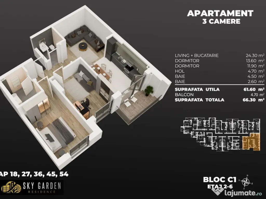 Direct dezvoltator, comision 0% Contact info si vizionari: 0720002332 Pretul apartamentului NU include TVA(21%) Parcare SUBTERANA -14.000 Euro Curs BNR+ 1% + TVA(21%) Parcarile se achizitioneaza separat si Nu sunt diponibile parcari exterioare ci doar subterane. Regim de inaltime: P+6E cu lift. Apartamentul pe care vi-l propunem, face parte dintr-un ansamblu rezidential situat in Popesti-Leordeni in proximitatea statiei de metrou Berceni (aprox.3 minute, pe jos), intr-o locatie privilegiata a orasului, la doi pasi de marile centre comerciale ale sectorului 4. Apartamentul este decomandat(nu total decomandat, avand livingul deschis cu bucataria) compus din 3 camere si dependinte(2 dormitoare, living + bucatarie, 2 bai, hol decomandare si un balcon in care se iese din living/bucatarie), conform schitei atasate. * Instalații sanitare PPR * Instalații electrice: cupru * Peste ultimul etaj: placa de beton * Tip de acoperiș: terasa MULTRISTRAT, necirculabila * Toate utilitatile contorizate individual (apa, gaze, electricitate). Avans minim: 25.000 Euro Curs BNR+ 1% Toate apartamentele se predau finisate complet - ‘’la cheie’’. Termen de predare noiembrie-decembrie 2026. Complexul, are acces atat din str. Biruintei cat si din str. Miraslau. Modalitatea de achizitie poate fi cash sau prin orice fel de credit bancar (Prima Casa sau ipotecar). Achizitia se face direct de la dezvoltator, fara intermediari sau alte comisioane! Oferim asistenta, consiliere si servicii complete pe toata perioada procesului de achizitie/vanzare, indiferent de modalitatea de achizitie. Confort: 1 Tip imobil: Bloc de apartamente Număr Băi: 2 Posibilitate parcare: Da Nr. locuri parcare: 1
