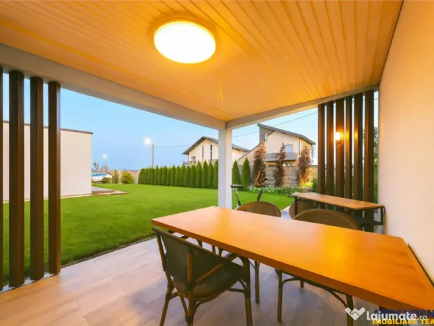 Mobilierul existent este de inalta calitate, fiind integrat armonios in designul general al casei, astfel incat locuinta se prezinta nu doar ca o constructie finalizata, ci ca un spatiu complet pregatit pentru a fi locuit.