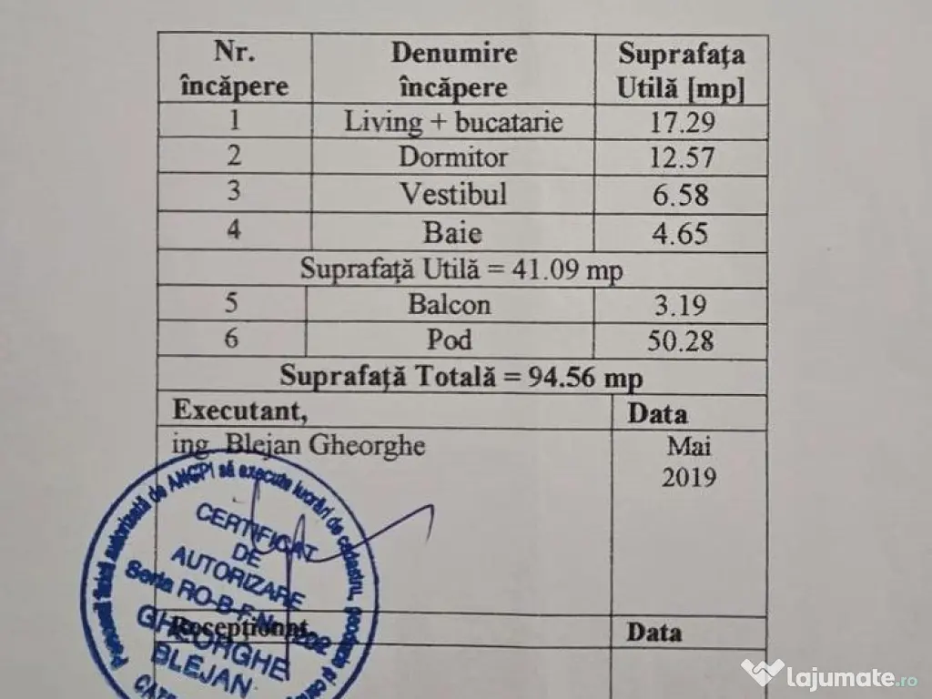 Apartament IDEAL pentru cei ce apreciaza rafinamentul, bunul gust si pentru cei care doresc sa se mute fara a mai investi. Un apartament ALTFEL, elegant si unic in zona lui, in a carui amenajare a primat atentia la detalii si eficienta. Aceasta proprietate este situata la etajele 4 si 5 ale unui imobil de pe Str. Anghel Moldoveanu, intr-o zona linistita si departe de zgomotul specific arterelor mari. Locuind aici, veti parcurge 5 minute pietonal pana la Sos. Giurgiului, respectiv statia tramvai si autobuz ce fac legatura cu metrou Eroii Revolutiei. Daca aveti masina proprie, puteti opta pentru achizitia unui loc de parcare exterior situat in curtea blocului. Imobilul din care face parte are 4 niveluri + pod, edificat pe o structura de cadre din beton armat si zidarie exterioara Poroterm 30 cm grosime, pereti despartitori din caramida Poroterm de 15 cm grosime, izolat cu termosistem de 10 cm. Apartamentul detine o suprafata totala de 95 mp dispusi astfel: -primul nivel (etajul 4 al blocului) detine o suprafata de 44 mp, ce reprezinta 1 camera 12.5 mp, living+bucatarie deschisa 17.2 mp, hol, baie si balcon; -al doilea nivel, in suprafata de 50 mp, reprezinta pod in acte, insa a fost amenajat integral ca si spatiu de locuit si detine 2 camere, 1 baie si 1 dressing. Tavanul este usor inclinat doar spre margini, inaltimea la acest nivel fiind foarte mare. Ferestrele sunt tip Velux. Apartamentul se vinde mobilat si utilat asa cum reiese din fotografii. De aceea, este IDEAL pentru cei doresc sa se mute imediat, fara a mai face alte investitii! Asadar, nu este doar o proprietate imobiliara, este un colt de inspiratie, rafinament si viata buna, un loc ce va poate deveni CAMIN! Va invitam la vizionarea acestui apartament vineri 17.04.2026, in intervalul orar 16.00-19.00. Confort: 1 Tip imobil: Bloc de apartamente Număr Băi: 2 Posibilitate parcare: Da Nr. locuri parcare: 1