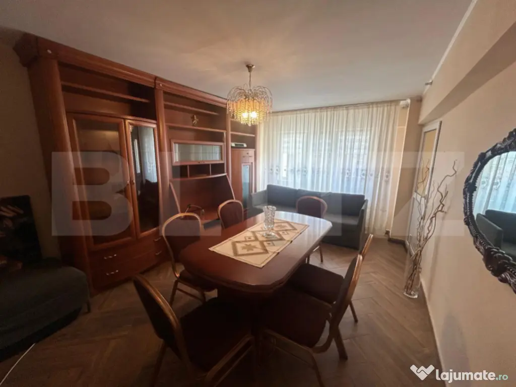 Blitz oferă spre închiriere un apartament modern cu 4 camere, decomandat, situat într-o zonă ultracentrală, la etajul 2 al unui imobil bine întreținut. Locuința este complet renovată și se remarcă printr-un design curat, luminos și funcțional. Bucătăria este spațioasă, mobilată modern, dotată cu plită pe gaz, cuptor, hotă și spații generoase de depozitare, plus loc de luat masa. Livingul este aerisit, cu canapea confortabilă și zonă de relaxare, iar dormitorul oferă un pat matrimonial și dressing încăpător, cu acces către balcon. Baia este modern finisată, prevăzută cu cada și mașină de spălat, iar holul larg asigură acces facil către toate încăperile, confirmând compartimentarea decomandată. Apartamentul beneficiază de finisaje de calitate, pardoseli moderne (parchet și gresie), tâmplărie bună și este pregătit pentru mutare imediată. Ideal pentru un cuplu sau o persoană care caută confort, lumină naturală și acces rapid către punctele de interes din oraș. Cod ofertă / ID BLITZ: P170228 Id intern: P170228 Confort: 1 Tip imobil: Bloc de apartamente Număr Băi: 2