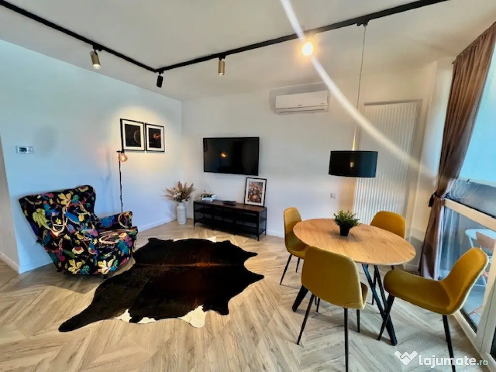AA/1123 Speed Imobiliare vă propune spre închiriat acest apartament situat în cartierul Tudor, în complexul de lux Concept 9 finalizat în anul 2023, compusă dintr-o cameră în suprafață de 53 mp, dotat cu centrală pe bloc, geamuri termopan, alarmă, aer condiționat. Apartamentul este proaspăt mobilat și utilat, aflându-se la prima închiriere. Prețul de închiriere este de 400 Euro Confort: Lux Tip imobil: Bloc de apartamente
