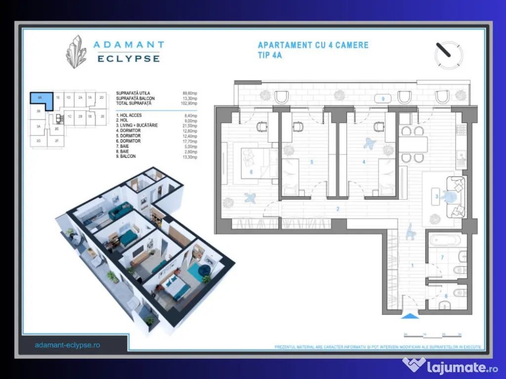 Pentru cei care își doresc mai mult decât un apartament – un cămin generos și complet funcțional – acesta este cel mai spațios apartament din cadrul ansamblului Adamant Eclypse!