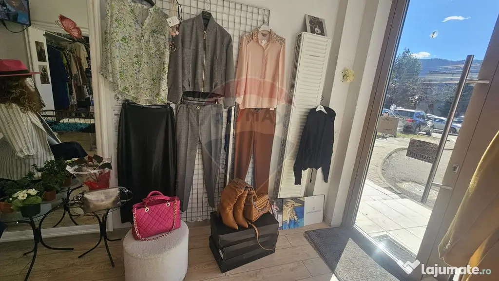 Magazinul poate functiona imediat după achizitionare fiind amenajat cu tot ce este necesar (manechine, stendere pentru expus hainele, mobilier, un interior placut cu un spatiu de expunere de 47 metri patrati, chirie foarte avantajoasa cu un contract pe termen lung.