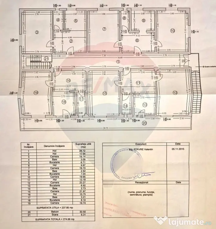 Suprafață totală (cu balcon 30,50 mp + scară 6,31 mp): 274,66 mp