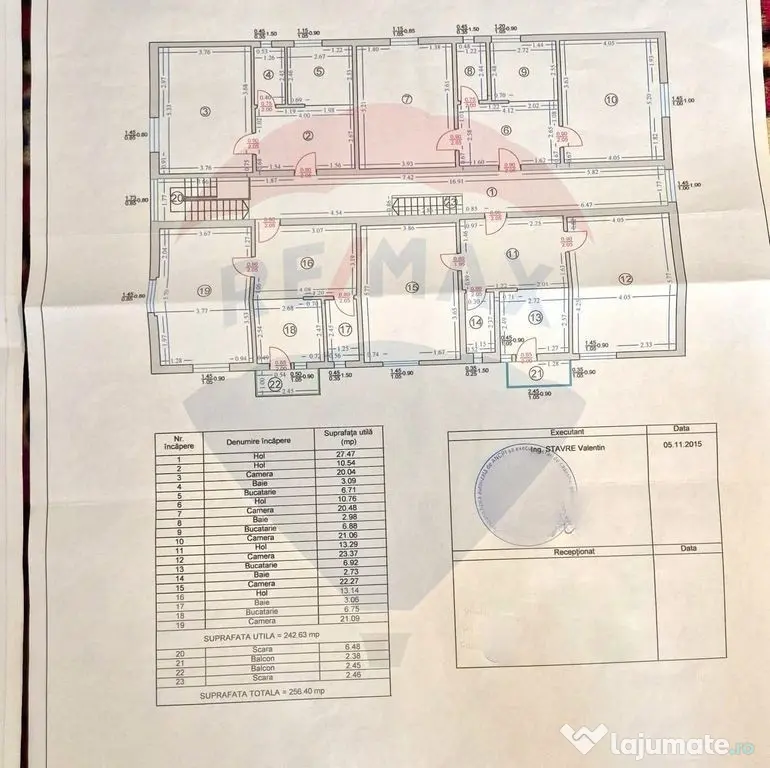 Suprafață totală (cu 2 balcoane + 2 scări): 256,40 mp