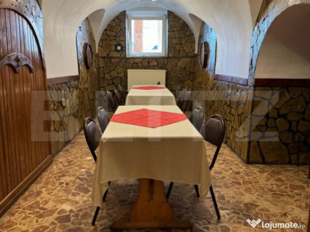 Blitz ofera spre vanzare o pensiune , amplasată în centrul orasului Siret. Această pensiune primitoare și confortabilă oferă o varietate de facilități și servicii pentru a asigura o ședere plăcută și relaxantă. Pensiunea dispune de 12 camere, toate amenajate cu gust și dotate cu tot ce este necesar pentru a vă simți ca acasă. Fiecare cameră este spațioasă și confortabilă, oferind un refugiu liniștit și relaxant după o zi plină de explorări sau activități în natură. Constructie tip D+ P + 1E . -Fundatii continue din beton, structura mixta din cadre de beton armat monolit combinate cu zidarie portanta de caramida la toate nivelele; Demisol- 2 bai, bucatarie, crama cu capacitate de cca 80 pers. Parter. -Parter -2 terase, una acoperită ( capacitate cca 100pers, fiecare ) , sală evenimente 150pers, 2 băi, magazie, recepție, sală protocol, Etaje. -12 camere, bai proprii, hol, balcon Finisaje. -Pardoseli din gresie la parter, pardoseli din mocheta in camere, gresie in grupurile sanitare, placaj cu faianta la bai si grupuri sanitare si var lavabil in camera, cu tamplarie din lemn. Dacă sunteți în căutarea relaxării și răsfățului, vă puteți destinde în sauna pensiunii . Pentru mai multe detalii nu ezitati sa ne contactati. Cod ofertă / ID BLITZ: P105999 Id intern: P105999 Stadiu construcţie: Finalizat Număr încăperi: 12