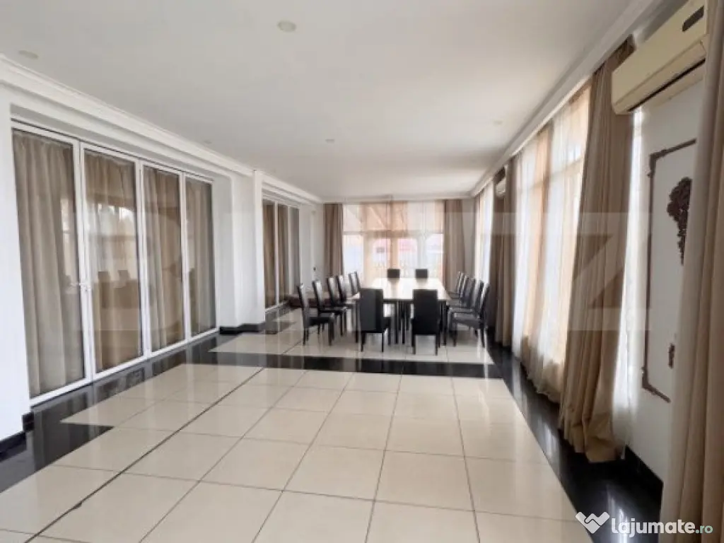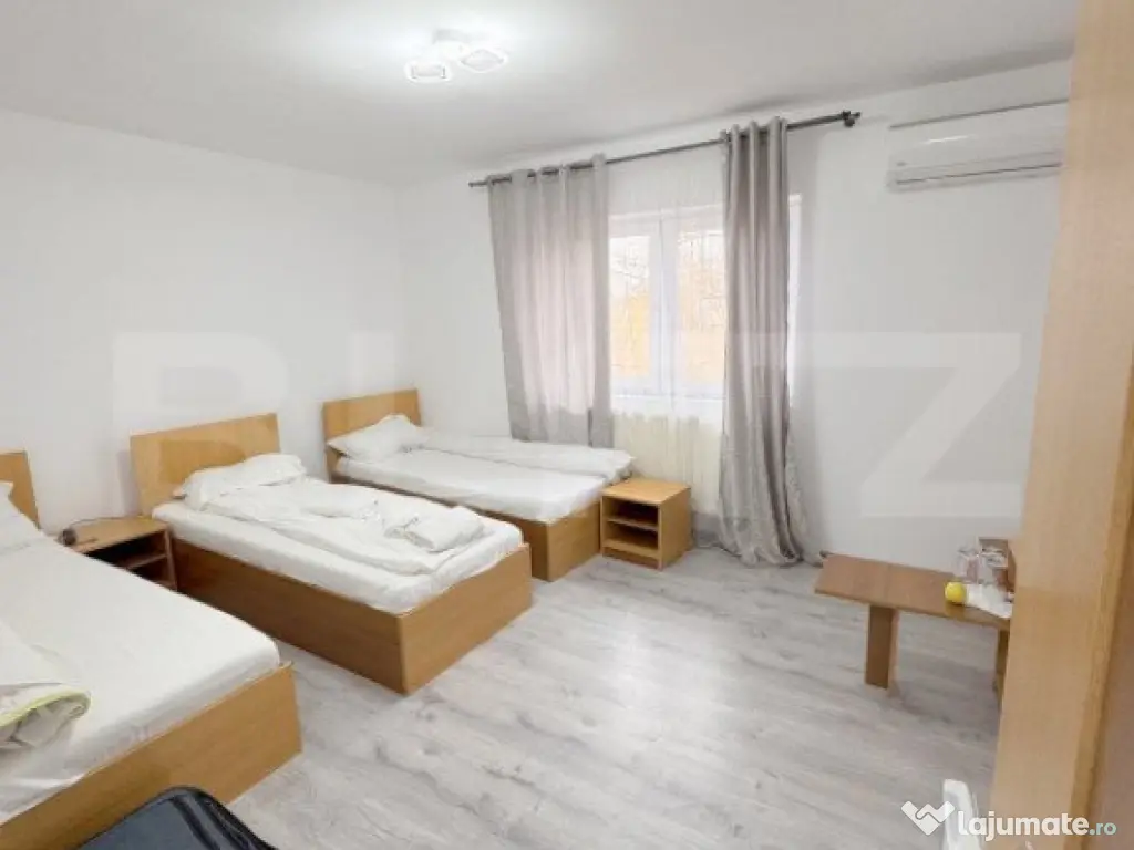 BLITZ propune in EXCLUSIVITATE pensiune turistica cu restaurant si sala evenimente. Pensiunea este realizata pe fundatii continue din beotn , zidarie din BCA , plansee din beton peste subsol si parter , acoperis tip sarpanta din lemn cu invelitoare Lindab. Pensiuena este compusa din : Subsol : adapost ( pivnita) , grup sanitar, 2 holuri Parter: sala restaurant , bucatarie total echipata, oficiu, 2 spalatoare, 2 holuri , toaleta si receptie . Mansarda: 9 camere, 9 bai si 2 Holuri . La exterior proprietatea dispune de aproximativ 20 locuri parcare si terasa acoperita. Proprietatea dispune de toate utilitatile precum si un generator de mare putere , supraveghere video , sistem alarma. Pensiunea se preda ca si afacere cu toate contractele de catering aflate in derulare precum si contractele de cazare aflate in derulare . Proprietatea se vinde utilata si mobilta. Pentru mai multe detalii va stam la dispozitie . Cod ofertă / ID BLITZ: P139256 Id intern: P139256 Stadiu construcţie: Finalizat Număr încăperi: 9