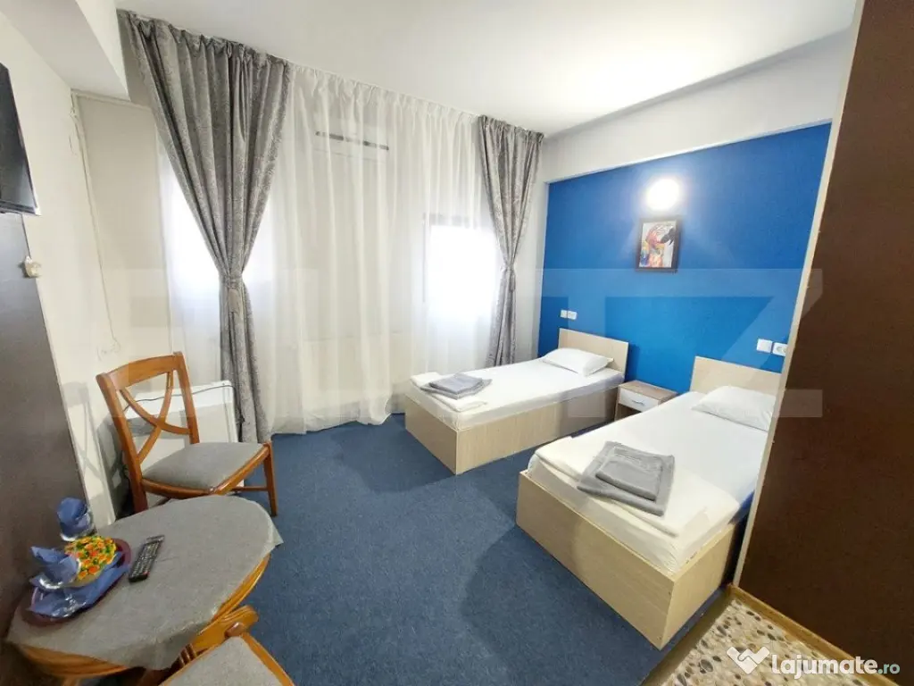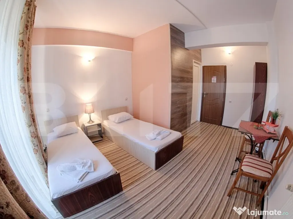 Blitz vă propune spre vânzare o pensiune deosebită, cu o suprafață construită de 675 mp, ce îmbină eleganța cu funcționalitatea! Aceasta dispune de 15 camere rafinate și 2 apartamente luxoase, fiecare dotate cu aer condiționat, oferind un confort desăvârșit. În plus, pensiunea include o bucătărie complet utilată și o sală de mese spațioasă, perfectă pentru servirea meselor delicioase. Beneficiind de o terasă pentru restaurant, un spa dedicat relaxării, o spălătorie pentru pensiune, saună și o sală de vibromasaj, această proprietate versatilă poate fi folosită și ca și casă de bătrâni, oferind un mediu sigur și confortabil pentru seniori. Un alt aspect important este că spațiul este situat pe o stradă cu vad comercial, ceea ce asigură o vizibilitate excelentă și un flux constant de clienți. De asemenea, pensiunea este acreditată de Ministerul Turismului cu 3 stele, garantând standarde înalte de calitate. Aceasta poate fi predată ca și afacere la cheie, oferind o oportunitate excelentă de a investi într-o afacere prosperă în turism sau în îngrijirea persoanelor în vârstă! Este o ocazie rară pe piață! ???? Cod ofertă / ID BLITZ: P138177 Id intern: P138177 Număr niveluri imobil: 2 Număr Băi: 15 Nr. locuri parcare: 5-10 Curent Apă Gaz