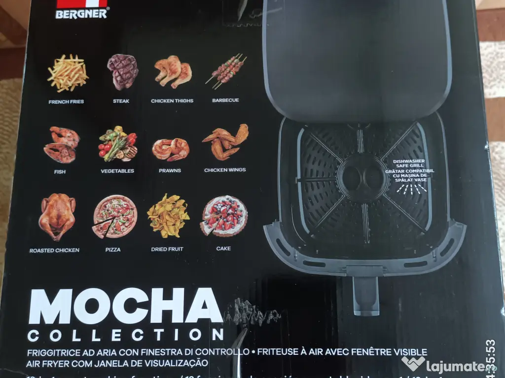 Vand Friteuza AIR FRYER Bergner Mocha Collection, 1600 w si 6,5 L capacitate, aproape noua. Nu este sigilat. A fost folosit de cateva ori. Este garantat functional, mai este in garantie. A fost cumparat in august 2025. Motivul vanzarii este ca am nevoie de capacitate mai mare.