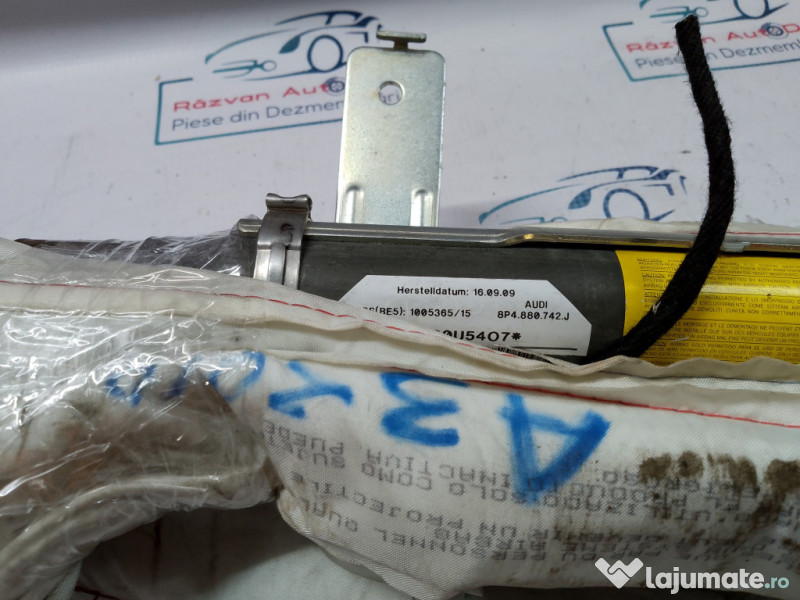 Airbag cortina dreapta Audi A3 2009. Cod(uri): 8P4880742J. Piesele comercializate sunt originale, provenite din dezmembrari. Dispunem de o gama larga de piese multimarca. Piesele sunt verificate inainte de a fi puse spre vanzare. In caz de neconformitate piesa se poate returna. Va rugam sa verificati disponibilitatea pieselor telefonic. Trimitem in tara prin curier. Marcă: Audi Producător: Audi