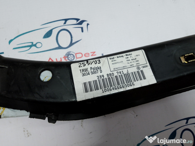 Airbag cortina stanga Volkswagen Passat B5 2003. Cod(uri): 3B9880741J. Piesele comercializate sunt originale, provenite din dezmembrari. Dispunem de o gama larga de piese multimarca. Piesele sunt verificate inainte de a fi puse spre vanzare. In caz de neconformitate piesa se poate returna. Va rugam sa verificati disponibilitatea pieselor telefonic. Trimitem in tara prin curier. Marcă: Volkswagen Producător: Volkswagen