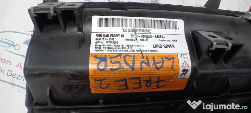 Airbag genunchi Land Rover Freelander 2 2008. Piesele comercializate sunt originale, provenite din dezmembrari. Dispunem de o gama larga de piese multimarca. Piesele sunt verificate inainte de a fi puse spre vanzare. In caz de neconformitate piesa se poate returna. Va rugam sa verificati disponibilitatea pieselor telefonic. Trimitem in tara prin curier. Marcă: Land Rover Producător: Land Rover