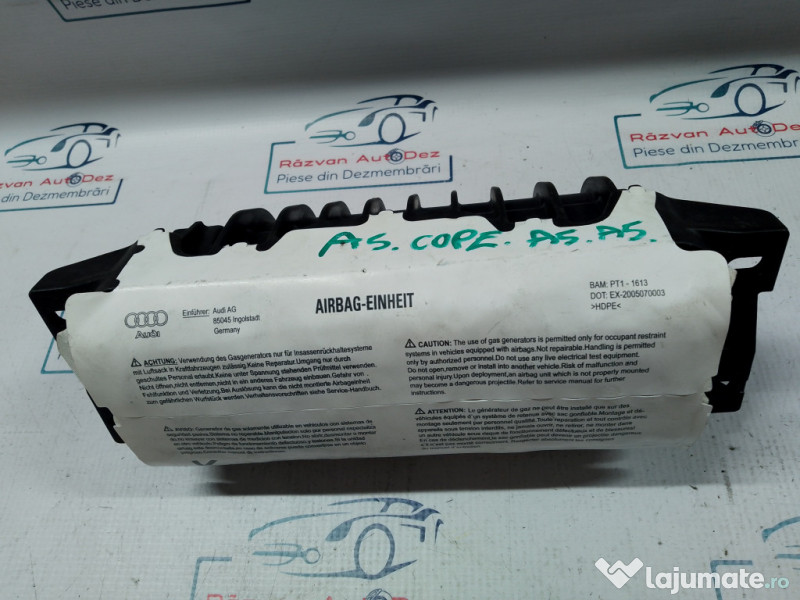 Airbag pasager Audi A5 Coupe 2008. Cod(uri): 8T0880204D. Piesele comercializate sunt originale, provenite din dezmembrari. Dispunem de o gama larga de piese multimarca. Piesele sunt verificate inainte de a fi puse spre vanzare. In caz de neconformitate piesa se poate returna. Va rugam sa verificati disponibilitatea pieselor telefonic. Trimitem in tara prin curier. Marcă: Audi Producător: Audi