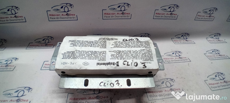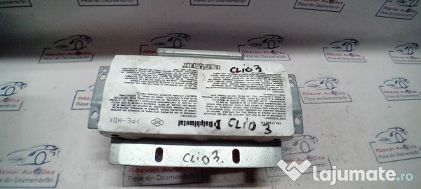 Airbag pasager Renault Clio 3. Cod(uri): 8200988017. Piesele comercializate sunt originale, provenite din dezmembrari. Dispunem de o gama larga de piese multimarca. Piesele sunt verificate inainte de a fi puse spre vanzare. In caz de neconformitate piesa se poate returna. Va rugam sa verificati disponibilitatea pieselor telefonic. Trimitem in tara prin curier. Marcă: Renault Producător: Renault