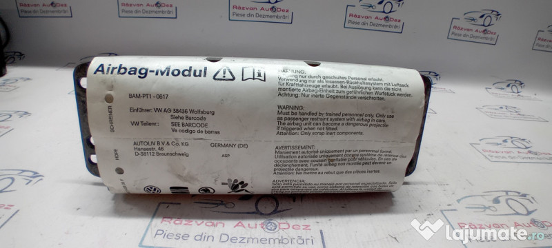 Airbag pasager Volkswagen Eos 2007. Cod(uri): 1K0880204K. Piesele comercializate sunt originale, provenite din dezmembrari. Dispunem de o gama larga de piese multimarca. Piesele sunt verificate inainte de a fi puse spre vanzare. In caz de neconformitate piesa se poate returna. Va rugam sa verificati disponibilitatea pieselor telefonic. Trimitem in tara prin curier. Marcă: Volkswagen Producător: Volkswagen