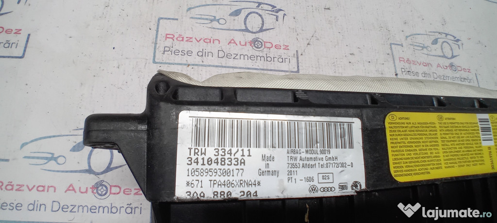 Airbag pasager Volkswagen Passat B7 2008. Cod(uri): 30A880204. Piesele comercializate sunt originale, provenite din dezmembrari. Dispunem de o gama larga de piese multimarca. Piesele sunt verificate inainte de a fi puse spre vanzare. In caz de neconformitate piesa se poate returna. Va rugam sa verificati disponibilitatea pieselor telefonic. Trimitem in tara prin curier. Marcă: Volkswagen Producător: Volkswagen