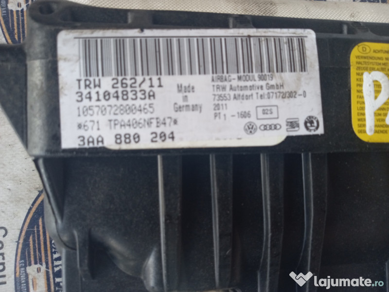 Airbag pasager Volkswagen Passat B7 2011. Cod(uri): 3AA880204, 34104833A. Piesele comercializate sunt originale, provenite din dezmembrari. Dispunem de o gama larga de piese multimarca. Piesele sunt verificate inainte de a fi puse spre vanzare. In caz de neconformitate piesa se poate returna. Va rugam sa verificati disponibilitatea pieselor telefonic. Trimitem in tara prin curier. Marcă: Volkswagen Producător: Volkswagen