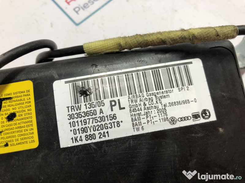 Airbag scaun stanga fata Volkswagen Golf 5 2005. Cod(uri): 1K4880241. Piesele comercializate sunt originale, provenite din dezmembrari. Dispunem de o gama larga de piese multimarca. Piesele sunt verificate inainte de a fi puse spre vanzare. In caz de neconformitate piesa se poate returna. Va rugam sa verificati disponibilitatea pieselor telefonic. Trimitem in tara prin curier. Marcă: Volkswagen Producător: Volkswagen