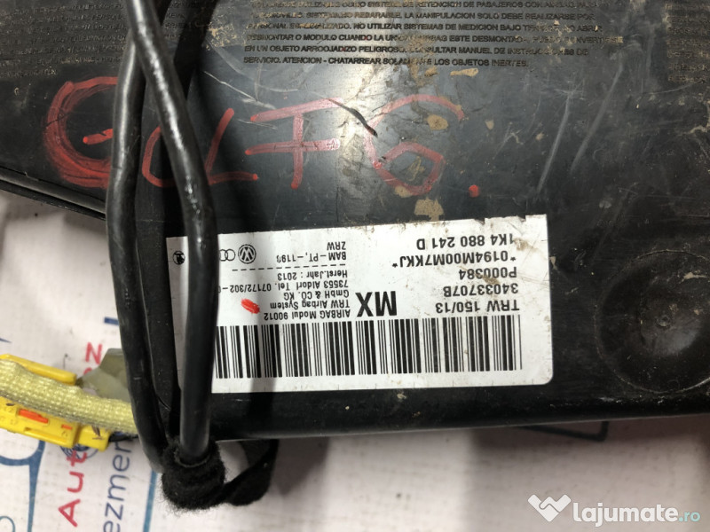 Airbag scaun stanga fata Volkswagen Golf 6 2010. Cod(uri): 1K4880241D. Piesele comercializate sunt originale, provenite din dezmembrari. Dispunem de o gama larga de piese multimarca. Piesele sunt verificate inainte de a fi puse spre vanzare. In caz de neconformitate piesa se poate returna. Va rugam sa verificati disponibilitatea pieselor telefonic. Trimitem in tara prin curier. Marcă: Volkswagen Producător: Volkswagen