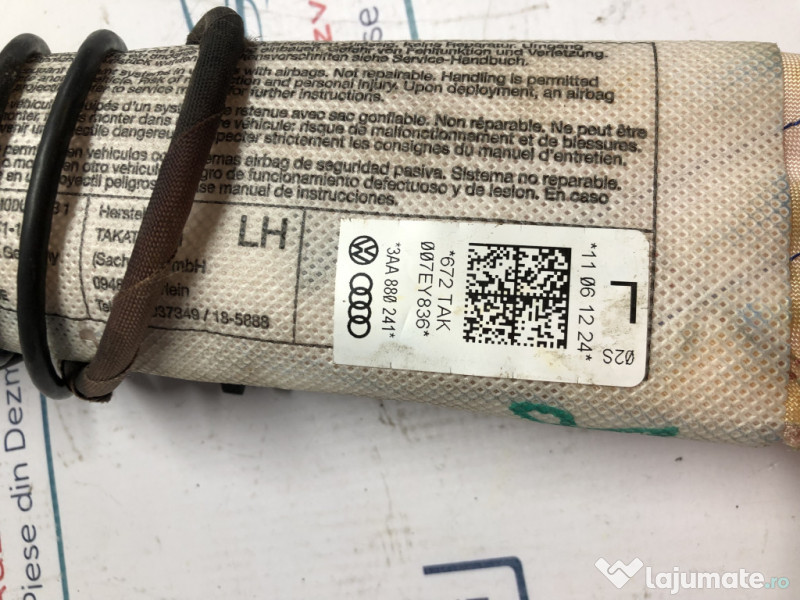 Airbag scaun stanga fata Volkswagen Passat B6 2006. Cod(uri): 3AA880241. Piesele comercializate sunt originale, provenite din dezmembrari. Dispunem de o gama larga de piese multimarca. Piesele sunt verificate inainte de a fi puse spre vanzare. In caz de neconformitate piesa se poate returna. Va rugam sa verificati disponibilitatea pieselor telefonic. Trimitem in tara prin curier. Marcă: Volkswagen Producător: Volkswagen