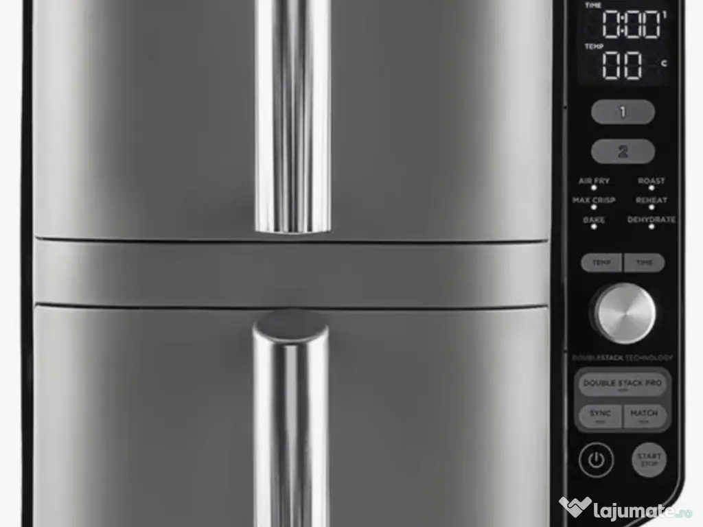 De vânzare,airfryer Ninja duble stack, folosit o singură dată,are garanție. Aparatul este modern cu două sertare pentru gătirea simultană a cărnii și a legumelor într-un timp scurt,păstrând calitatea și gustul deosebit al produselor.Aparatul are touchscreen și afișaj bizonal