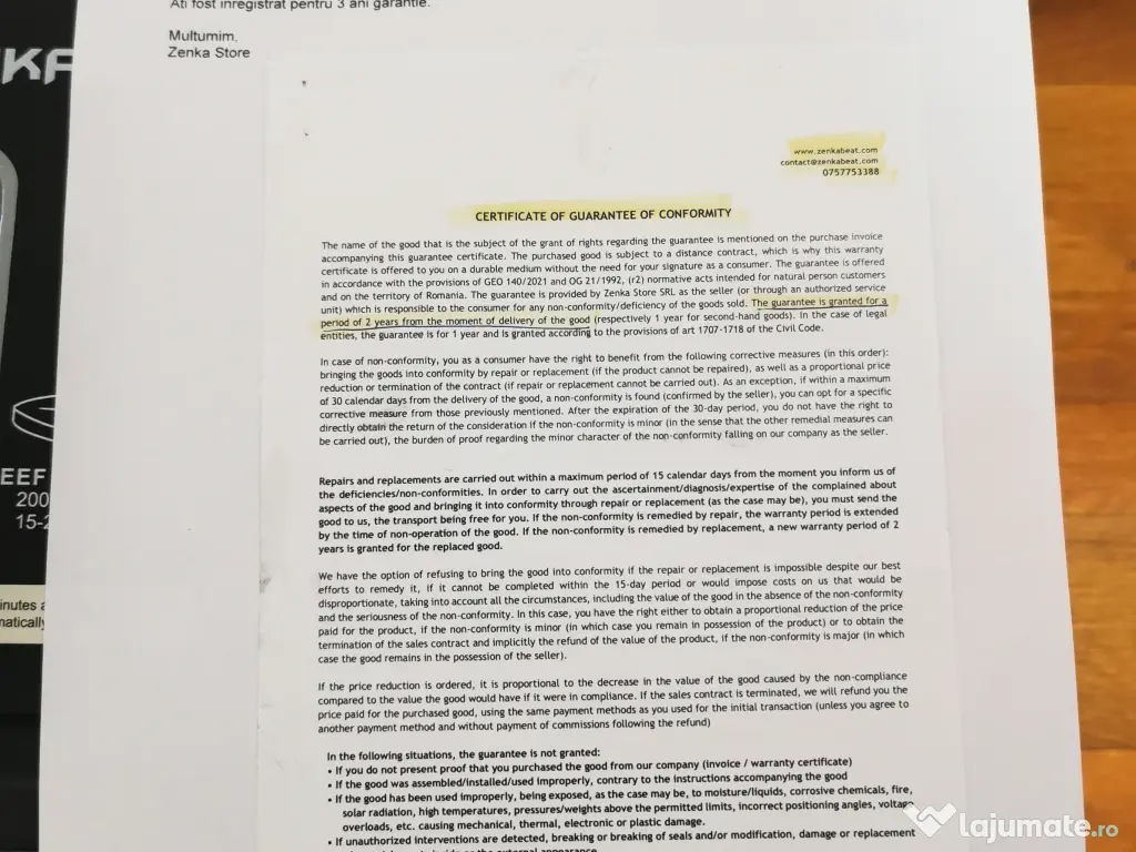 Ofer factura,certificat garantie si extragarantie.